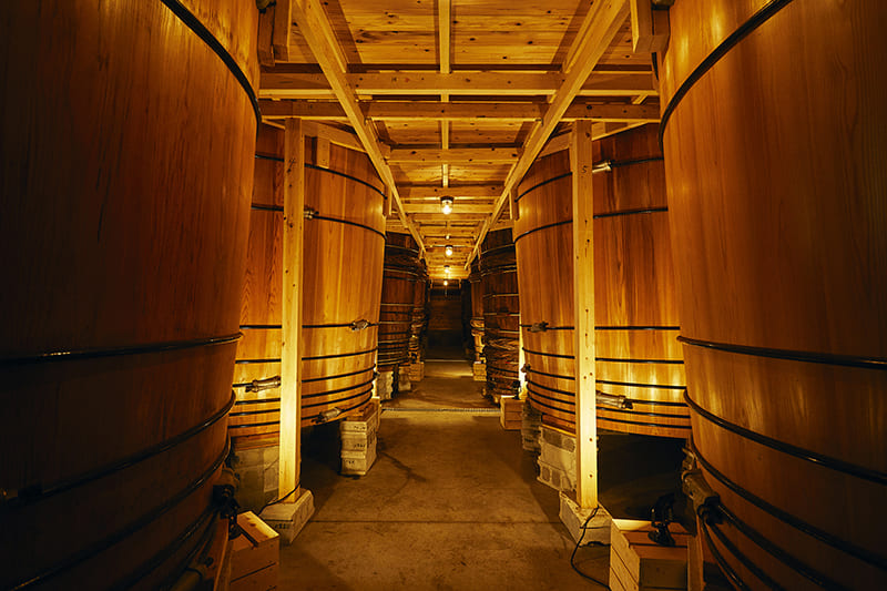 Today, most manufacturers brew in stainless steel tanks, but Shibanuma continues to use the traditional method of natural fermentation in wooden barrels. This involves fermenting soybeans, wheat and salt in large cedar barrels, then maturing the mixture slowly — like wine and whiskey — to develop a distinctively rich flavor and aroma.