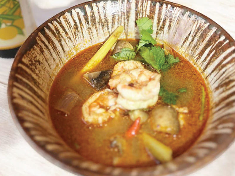 This bright twist by Boonyakiat to the classic tom yum goong recipe basically blends bold Thai aromatics with the citrusy elegance of Japanese yuzu soy sauce, which adds depth and umami by replacing some of the lime juice and fish sauce traditionally used in the dish.