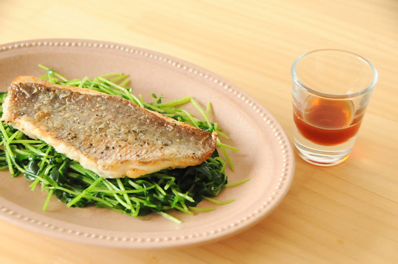 The fish is paired with a light sauce of lemon and usukuchi shoyu in equal parts, which enhances the natural umami of the white fish without overpowering its delicate flavor. Lightly sauteed pea shoots are served on the side, allowing their fresh flavor to shine. It’s an elegant way to enjoy seasonal seafood without overpowering its subtle taste.