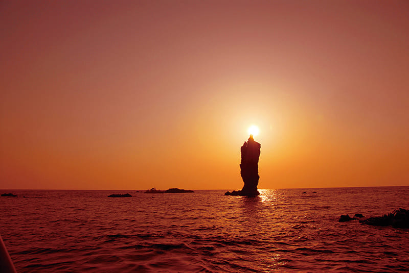 The remote Oki Islands are about 40 to 80 kilometers off the coast of Shimane. The volcanic group’s four main inhabited landmasses are Dogo and the three Dozen Isles that were designated as a Global Geopark in 2013. Undeniably beautiful, there is a powerful majesty to the Oki Island scenery, from the jagged Kuniga coast to the 257-meter-high Matengai Cliff. At sunset, Candle Island glows with the sun behind it like its namesake, creating a unique photo opportunity for shutterbugs.