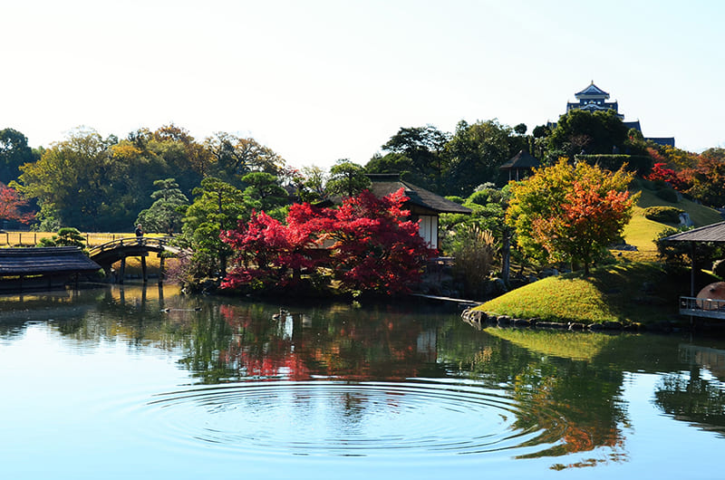 Edo culture also comes to life beyond Kurashiki’s Historical Area at Okayama Korakuen, one of Japan’s Three Great Gardens. Built in the 17th century for a powerful feudal lord, the garden is a strolling oasis designed for inner reflections rather than ostentatious display. Its spacious, open lawns, a rarity in the world of Japanese gardens, stretch out invitingly, while the garden’s artificial hill, historical buildings and other features are connected by quiet paths and gentle waterways. Sawa-no-ike, the large central pond, acts as a mirror enhancing the colors of the surrounding cherry blossoms in spring, maple leaves in autumn and clear blue skies all year round.