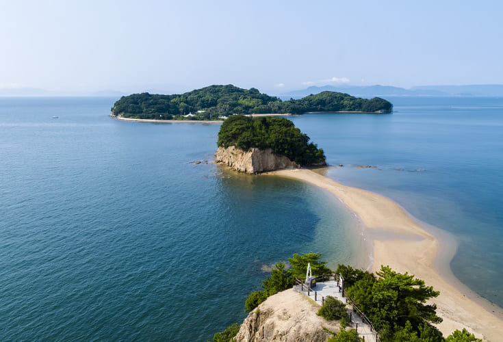 Angel Road, on the other hand, can be enjoyed all year round. It’s an ephemeral path between Shodoshima and a string of islets that only appears at low tide. It is said that lovers who cross the sandbar together while holding hands will be together forever, almost as if the sea itself blessed their union.